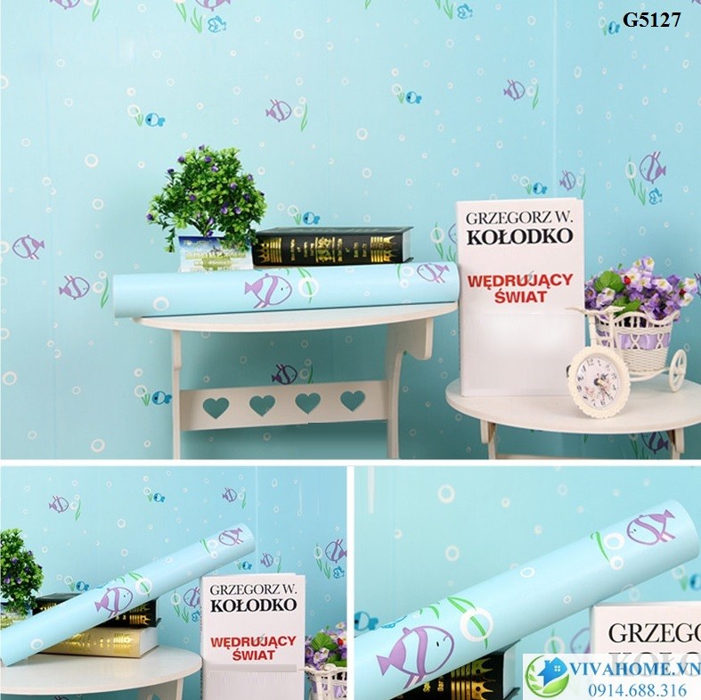 - Giấy dán tường kích thước khổ 10m x45cm , một cuộn dán được khoảng tường 4,5 m vuông. Giá sale còn 120k/ cuộn