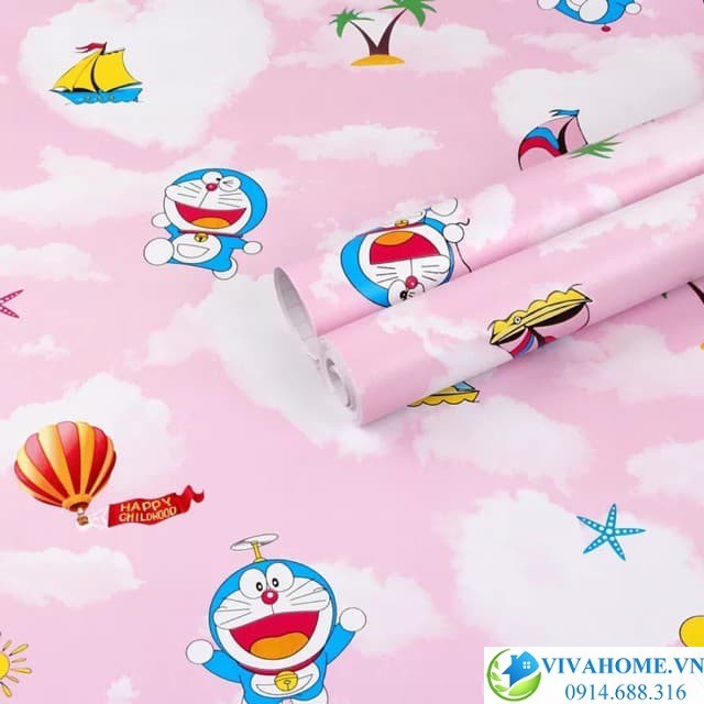 10m Giấy dán tường Doremon bầu trời hồng