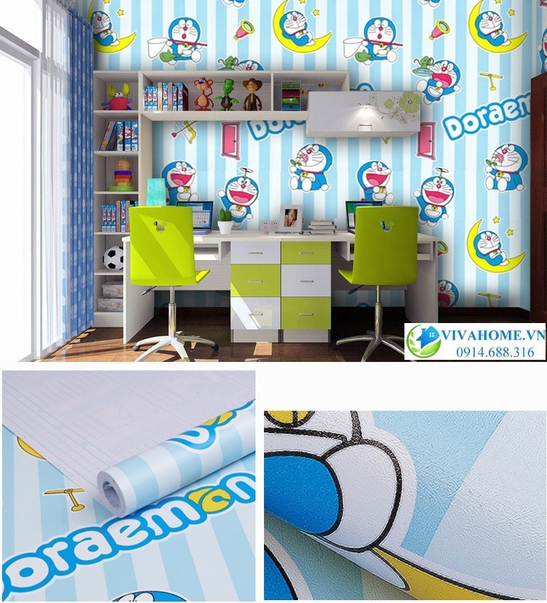 - Chất liệu: Giấy bề mặt phủ Vinyl, Có khả năng chống ẩm, chống mốc, độ bám cao, bền màu, dễ dàng lau chùi bằng khăn ướt. Nhà có trẻ nhỏ dùng bút màu dạ vẽ lên cũng lau chùi được