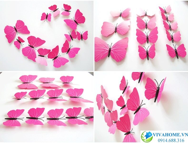 - Bướm 3D dán tường hàng loại 1, một bộ gồm 12 con, size 5cm-12cm, cánh bướm là nhựa cứng cán mỏng, vân bướm được thiết kế tinh xảo, màu sắc sắc nét, không bị nhòe