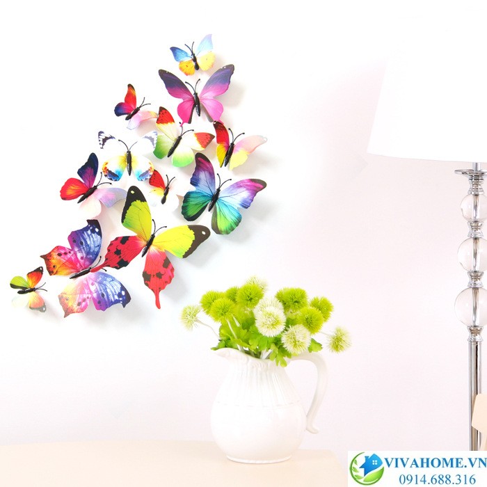 - Bướm 3D dán tường hàng loại 1, một bộ gồm 12 con, size 5cm-12cm, cánh bướm là nhựa cứng cán mỏng, vân bướm được thiết kế tinh xảo, màu sắc sắc nét, không bị nhòe