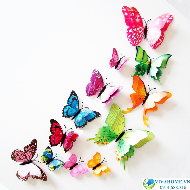 - Bướm 3D dán tường hàng loại 1, một bộ gồm 12 con, size 5cm-12cm, cánh bướm là nhựa cứng cán mỏng, vân bướm được thiết kế tinh xảo, màu sắc sắc nét, không bị nhòe