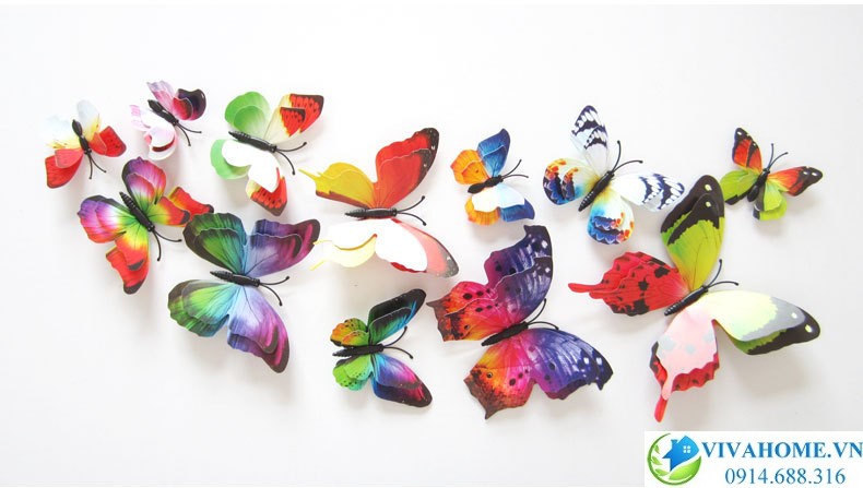 - Bướm 3D dán tường hàng loại 1, một bộ gồm 12 con, size 5cm-12cm, cánh bướm là nhựa cứng cán mỏng, vân bướm được thiết kế tinh xảo, màu sắc sắc nét, không bị nhòe