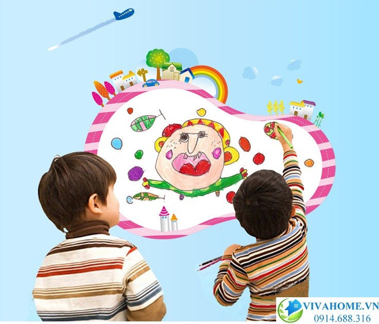 - Decal Bảng dán tường trắng sử dụng bút dạ hoặc bút màu để viết sẽ là không gian riêng cho bé thỏa sức vẽ vời, học chữ và sáng tạo. Bố mẹ cũng giải quyết vấn nạn bé vẽ bừa lên tường hoặc suốt ngày ngồi xem ipad, ti vi.