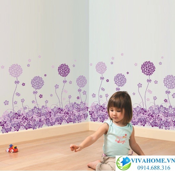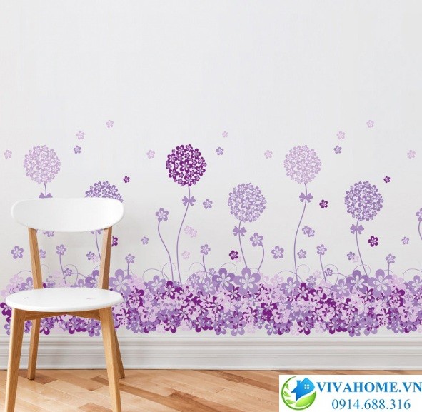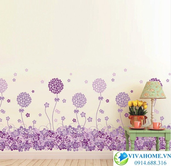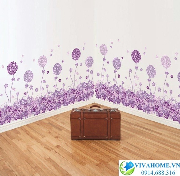 Decal dán chân tường Cẩm tú cầu tím với hình ảnh những bông hoa cẩm tú màu tím được thiết kế cách điệu, màu sắc nhẹ nhàng sẽ là điểm nhấn giúp căn phòng của bạn trở nên lãng mạn, thơ mộng, đáng yêu. Bạn còn có thể che đi những vết bẩn ở phần tường phía dưới, khe tiếp xúc giữa tường và sàn, tạo cảm giác sạch sẽ.