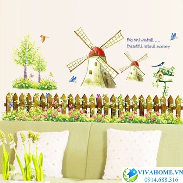 Hãy làm mới ngôi nhà của bạn với mẫu Decal dán chân tường Cối xay gió với hình ảnh hàng rào hoa cỏ xanh mát và những chiếc cối xay gió cổ điển. Chắc chắn, đây sẽ là điểm nhấn giúp cho ngôi nhà của bạn thêm xinh động, đáng yêu.