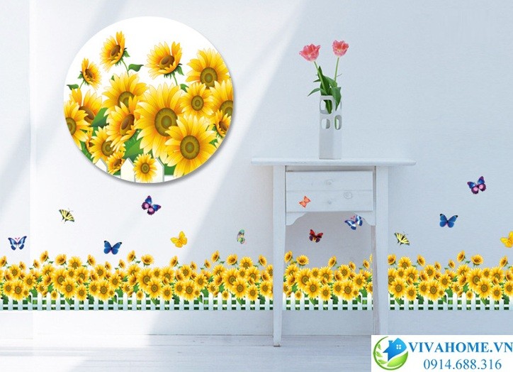 Decal dán chân tường Hàng rào hoa hướng dương