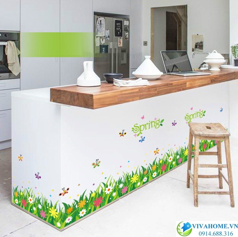 Decal dán chân tường Hoa cỏ mùa xuân với hình ảnh thảm cỏ xanh cùng những bông hoa rực rỡ sắc màu, phía trên những chú bướm xinh xắn đang tung tăng bay lượn sẽ làm căn phòng của bạn thêm tươi vui, tràn đầy sức sống