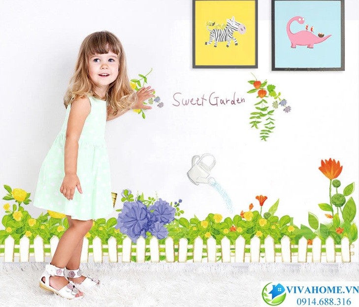 Decal dán chân tường Khu vườn ngọt ngào với hình ảnh khu vườn xanh tươi như được tái hiện qua nét vẽ của người họa sĩ tranh sơn dầu, điểm lác đác những bông hoa nhỏ e ấp sẽ làm cho căn phòng của bạn thêm sinh động, đáng yêu. Bạn còn có thể che đi những vết bẩn ở phần tường phía dưới, khe tiếp xúc giữa tường và sàn, tạo cảm giác sạch sẽ.