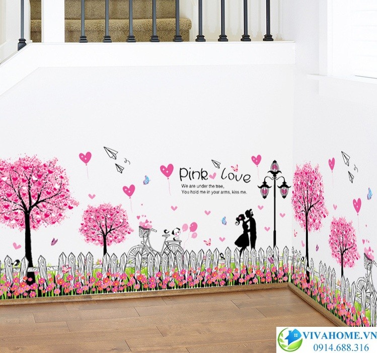 Decal dán chân tường pink love với hình ảnh hoa cỏ thiên nhiên được thiết kế cách điệu mang lại vẻ lãng mạn, khoáng đạt và độc đáo cho căn phòng của bạn.