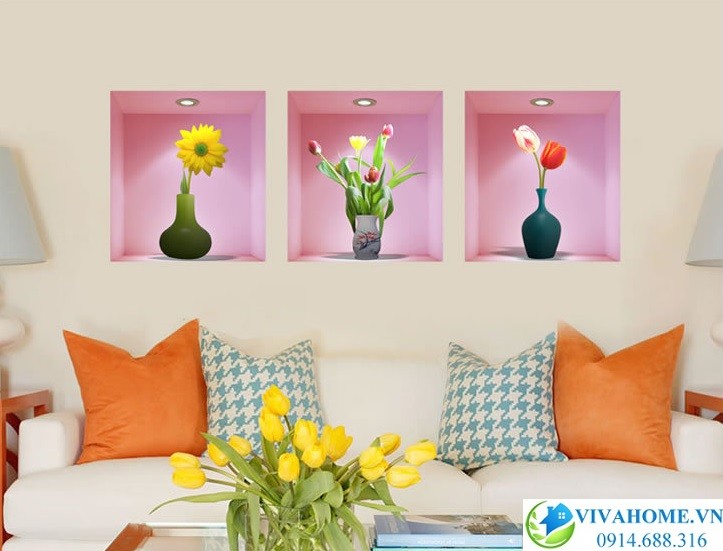 Decal dán tường 3 ô cửa hoa với những họa tiết tươi vui, bắt mắt sẽ tạo ra cá tính riêng cực độc đáo và cuốn hút cho căn phòng của bạn