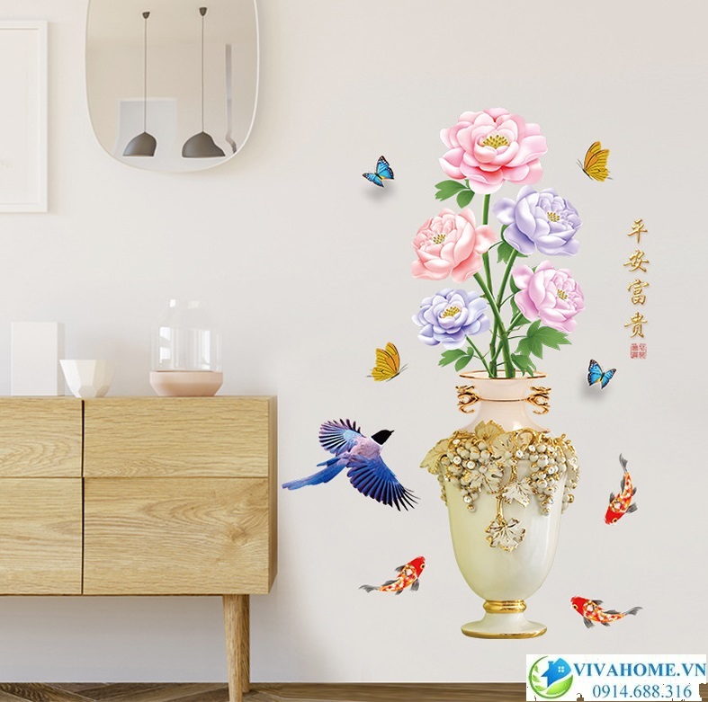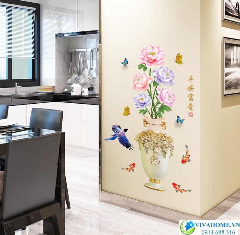 Decal dán tường Bình hoa hồng là thiết kế mới và độc đáo nhất năm nay. Kích thước bình hoa lớn, với những bông hoa to sắc hoa rực rỡ sẽ đem lại may mắn cho gia đình bạn.