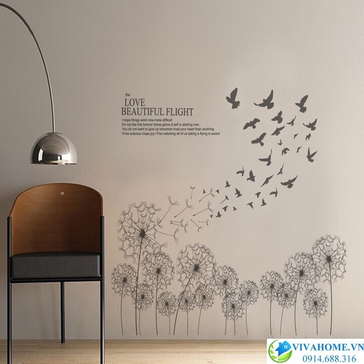 Decal dán tường Bồ công anh trong gió với hình ảnh hoa cỏ thiên nhiên được thiết kế cách điệu mang lại vẻ lãng mạn, tinh tế, gam màu trầm nhưng không hề già nua, trái lại sản phẩm sẽ đem lại vẻ sang trọng và hiện đại cho ngôi nhà của bạn