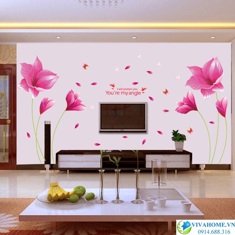 Decal dán tường bộ đôi hoa ly hồng