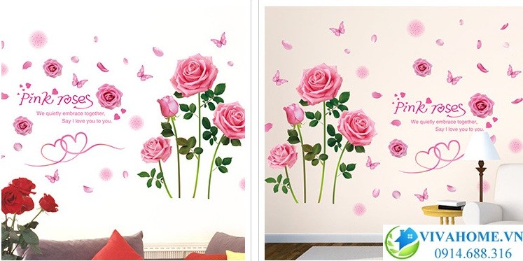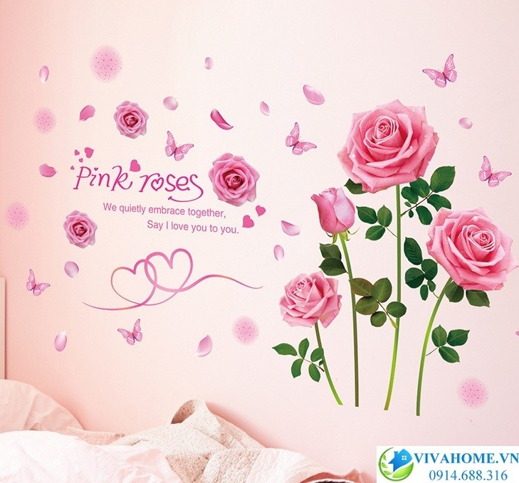 Decal dán tường bông hoa hồng phấn là tuyệt phẩm mới ra lò của năm nay. Thiết kế độc quyền bên xưởng in nên đảm bảo ít shop có được. Với sắc hoa hồng nhẹ nhàng, nhã nhặn sẽ mang lại vẻ thanh tao, lãng mạn nhưng không kém phần sang trọng cho ngôi nhà của bạn.