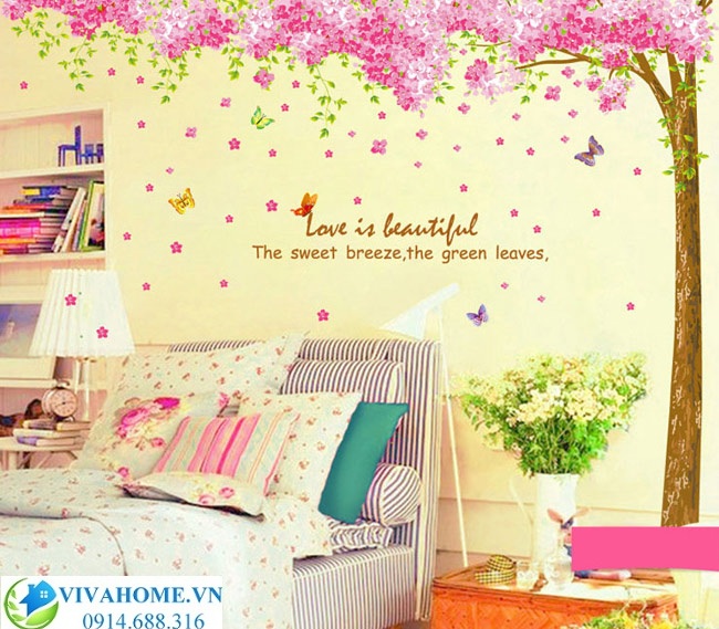 Decal dán tường Cây hoa anh đào hồng size đại 2m6