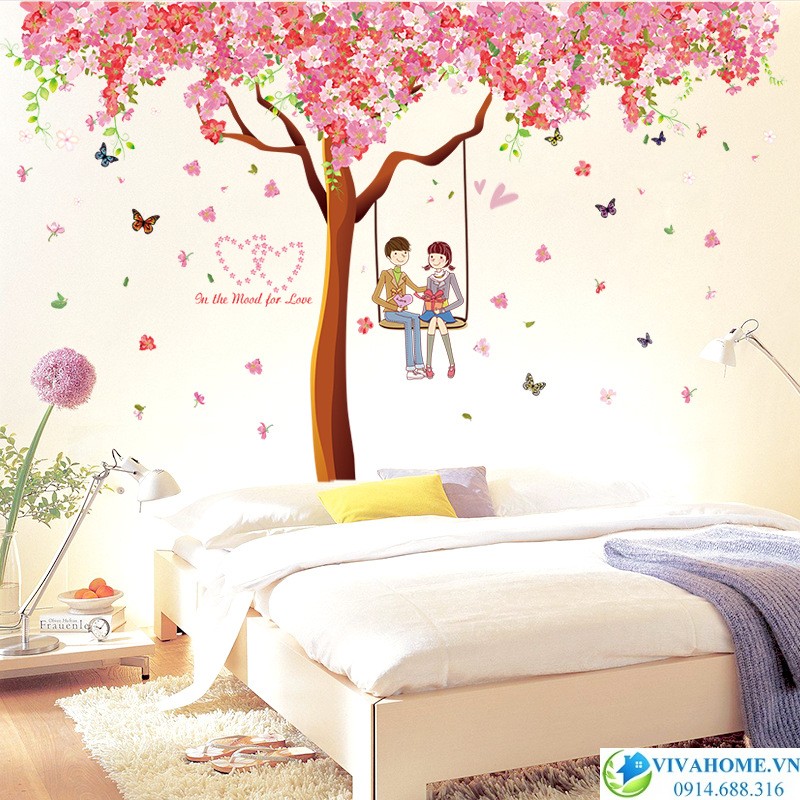 Decal dán tường cây hồng tình yêu với màu sắc sống động mang lại vẻ lãng mạn nhưng không kém phần thanh tao cho ngôi nhà của bạn.