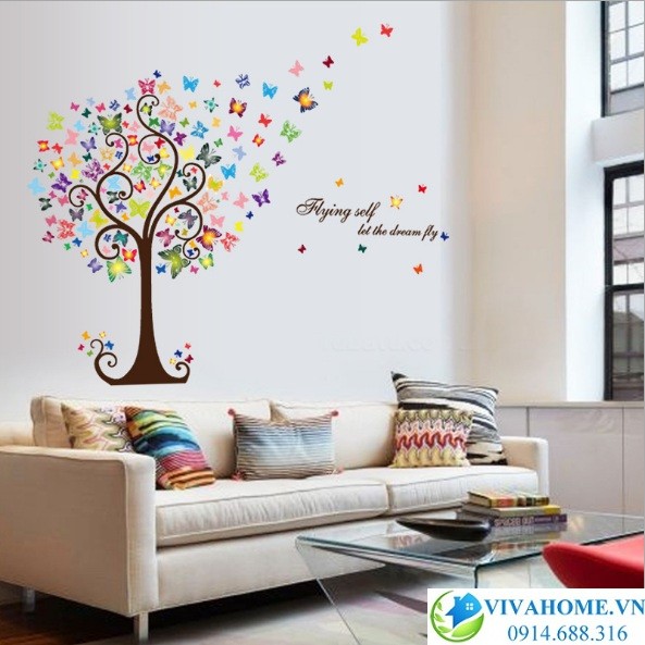 Decal dán tường cây sắc màu với màu sắc sống động mang lại vẻ lãng mạn nhưng không kém phần thanh tao cho ngôi nhà của bạn.
