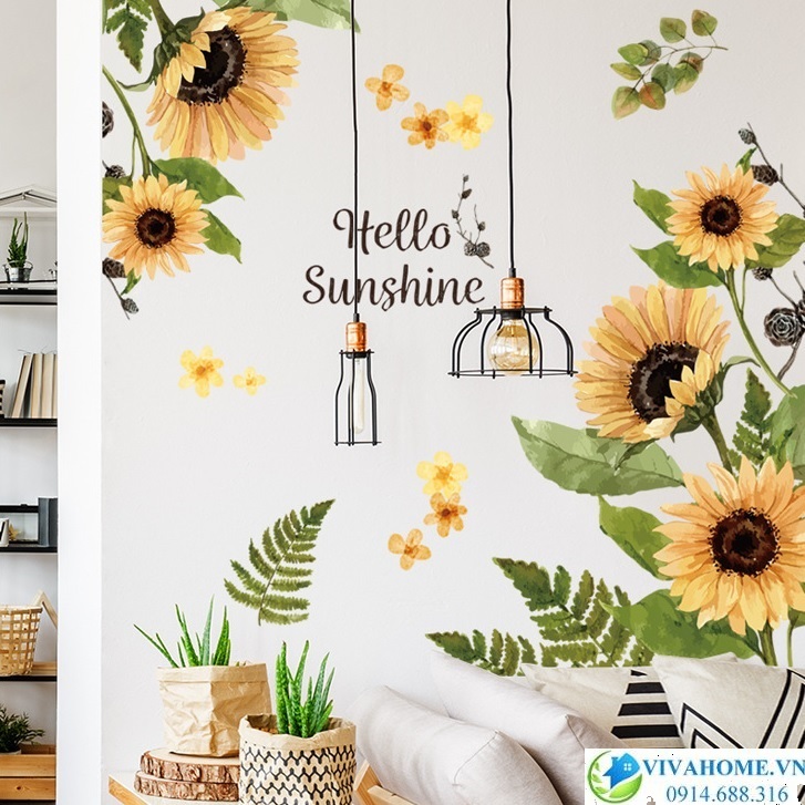 Decal dán tường Hoa hướng dương với hình ảnh hoa hướng dương vàng tươi, rực rỡ đón nắng sẽ giúp cho căn phòng thêm sống động, đáng yêu.