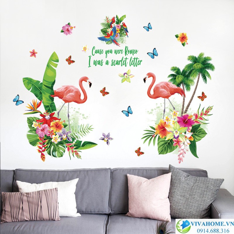 Decal dán tường Chim hạc với hình ảnh thiên nhiên cây cối sinh động, tươi vui, mang cả không gian xanh mát vào ngôi nhà của bạn