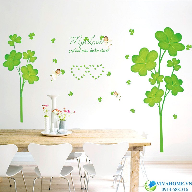 Decal dán tường cỏ ba lá trái tim xanh với hình ảnh hoa cỏ thiên nhiên tươi vui bắt mắt giúp căn phòng trở lên sống động, bớt khô khan. Giờ thì mình có thể mang cả vườn hoa vào nhà rồi!