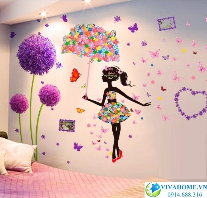Decal dán tường Cô gái che ô với những họa tiết tươi vui, bắt mắt, cực kì kute giúp căn phòng thêm lãng mạn, cuốn hút, tạo điểm nhấn khác biệt