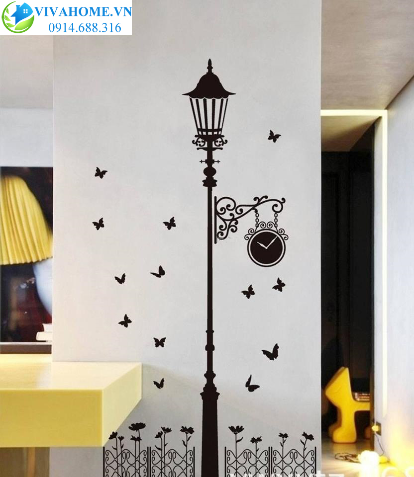 Decal dán tường Cột đèn đen