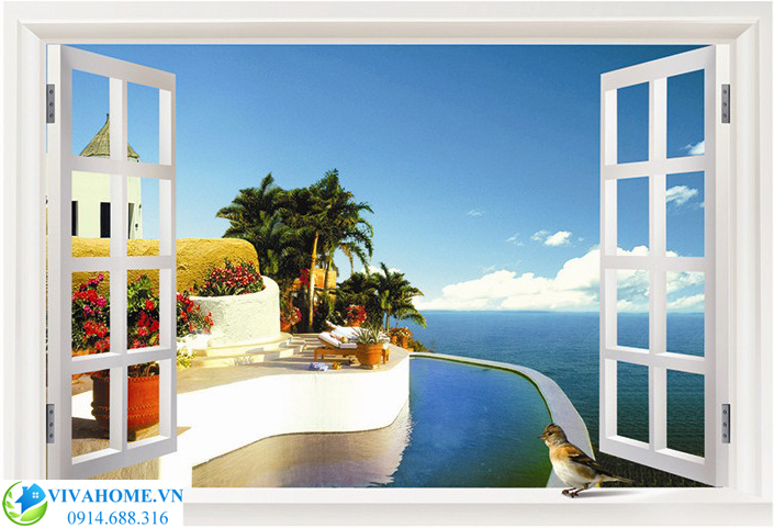 Decal dán tường Cửa sổ hướng biển lấy cảm hứng từ vẻ đẹp của khung cảnh thiên nhiên nổi tiếng cùng màu sắc hài hòa, thiết kế in 3D tạo chiều sâu sẽ giúp không gian căn phòng trở nên rộng mở, khoáng đạt.