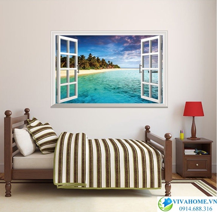 Decal dán tường Cửa sổ hướng biển số 2 lấy cảm hứng từ vẻ đẹp của khung cảnh thiên nhiên nổi tiếng cùng màu sắc hài hòa, thiết kế in 3D tạo chiều sâu sẽ giúp không gian căn phòng trở nên rộng mở, khoáng đạt.