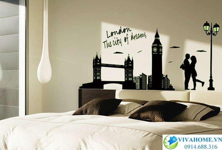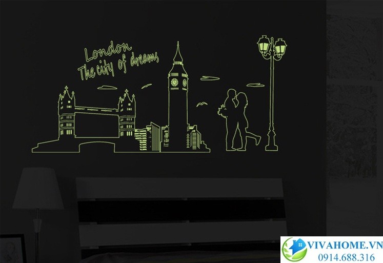Decal dán tường dạ quang Tình yêu London lấy cảm hứng từ vẻ đẹp của danh lam nổi tiếng thế giới, được thiết kế và sản xuất hết sức công phu, sáng tạo. Căn phòng trở nên sang trọng vào ban ngày với màu đen quý phái, và trở nên lung linh, huyền ảo vào ban đêm nhờ những họa tiết dạ quang phát sáng