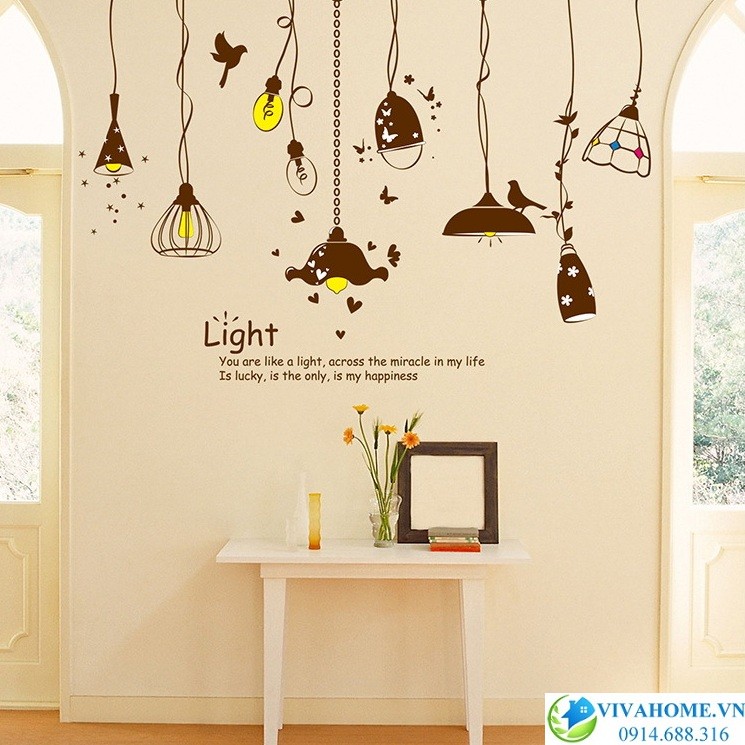 Decal dán tường Dây đèn nâu Light với hình ảnh những chiếc đèn trần xinh xắn với gam màu nâu trầm sang chảnh, được thiết kế cách điệu sẽ làm cho căn phòng của bạn thêm lãng mạn mà không kém phần cá tính, cổ điển