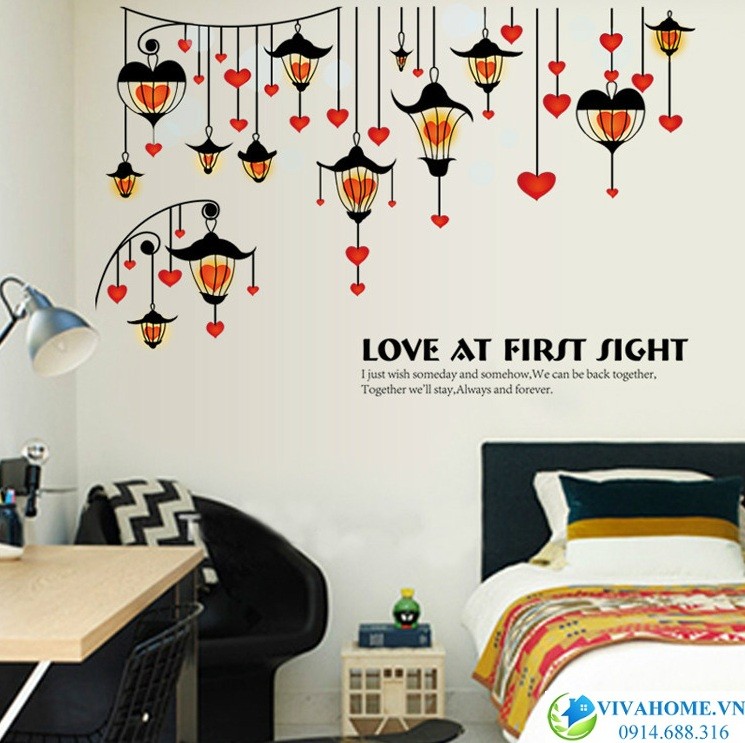 Decal dán tường Đèn lồng với hình ảnh những chiếc đèn lồng xinh xắn với màu sắc tương phản ấn tượng, được thiết kế cách điệu sẽ làm cho căn phòng của bạn thêm lãng mạn mà không kém phần cá tính, huyền bí