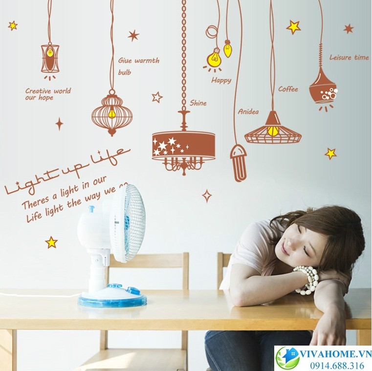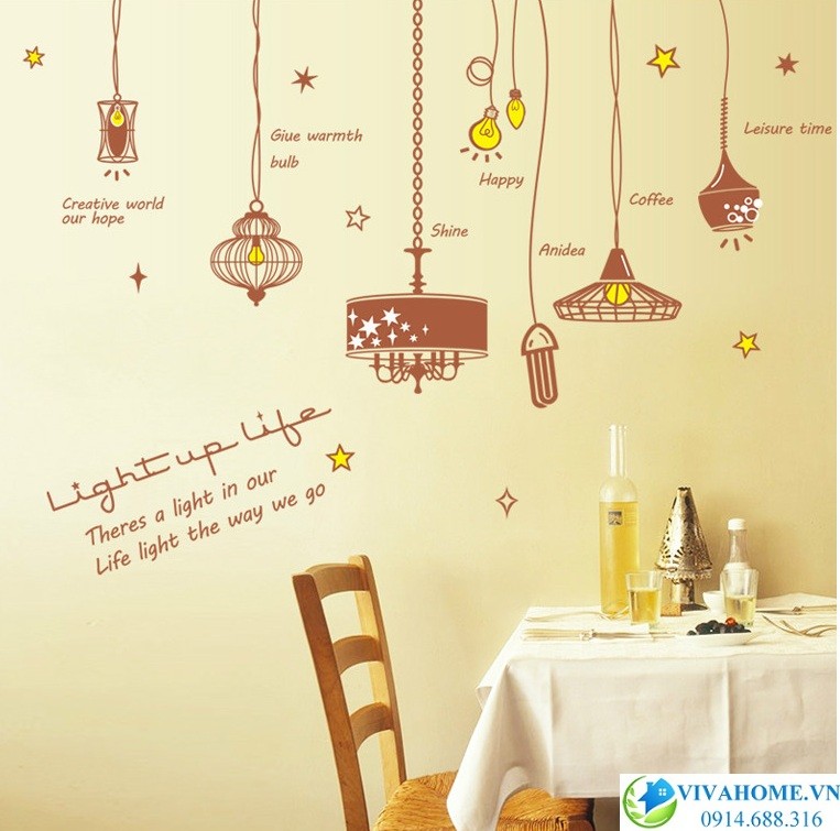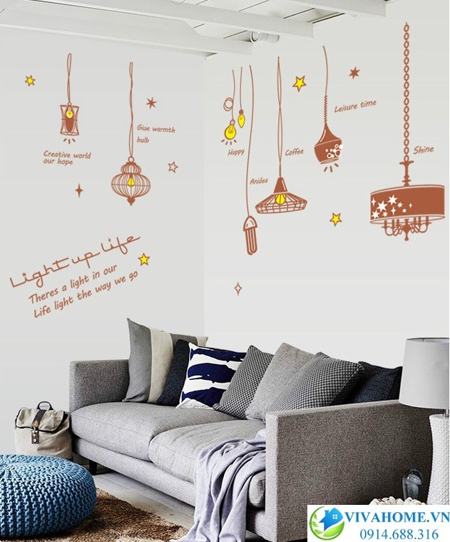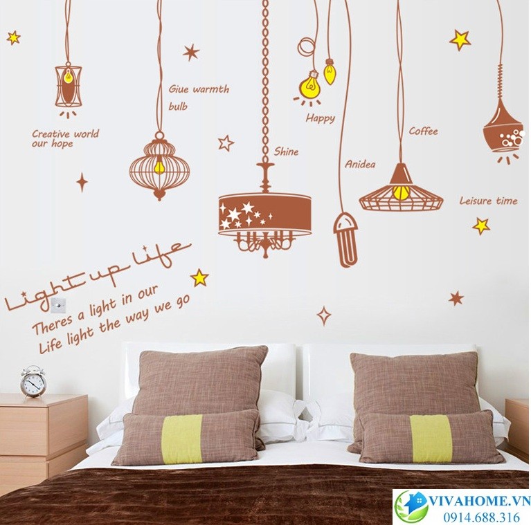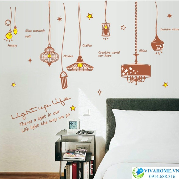 Decal dán tường Dây đèn nâu vàng với hình ảnh những chiếc đèn trần xinh xắn với gam màu nâu trầm sang chảnh, được thiết kế cách điệu sẽ làm cho căn phòng của bạn thêm lãng mạn mà không kém phần cá tính, cổ điển