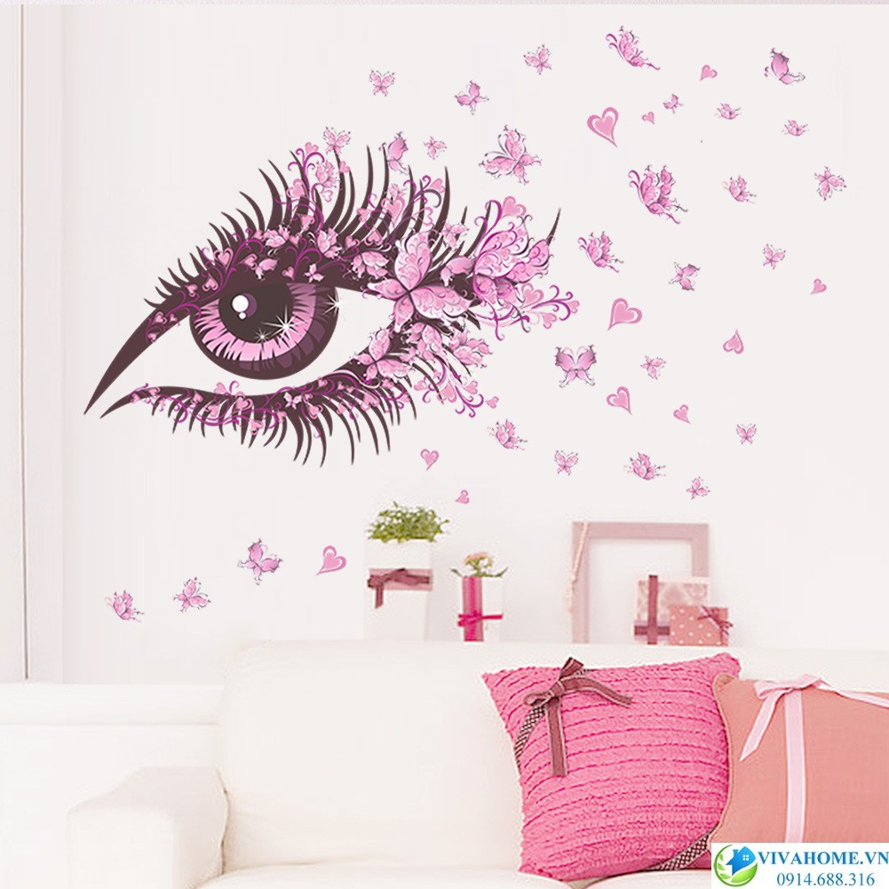 Decal dán tường Đôi mắt với hình ảnh đôi mắt long lanh cùng những hình họa sống động, bắt mắt, gam màu trầm nhưng không hề già nua sẽ tạo ra cá tính riêng cực độc đáo và cuốn hút mà không kém phần sang trọng cho căn phòng của bạn