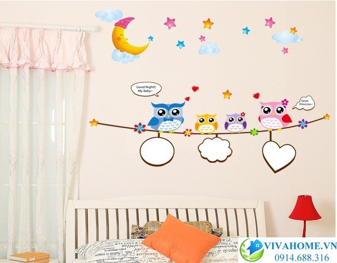 Decal dán tường Gia đình cú xinh