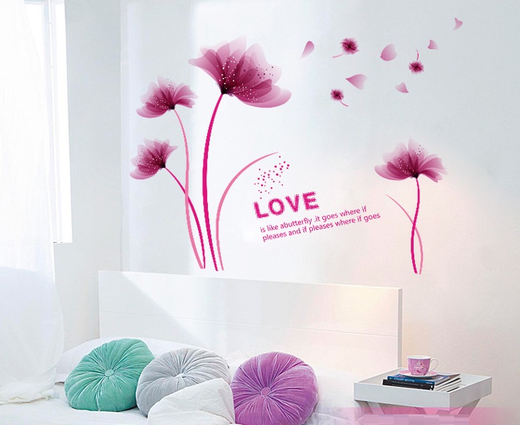 Decal dán tường hoa cánh mỏng tím với màu sắc hoa cỏ nhẹ nhàng, nhã nhặn mang lại vẻ thanh tao nhưng không kém phần sang trọng cho ngôi nhà của bạn. Sau một ngày làm việc vất vả, thật tuyệt vời khi được trở về tổ ấm với không gian hoa cỏ tươi mát.