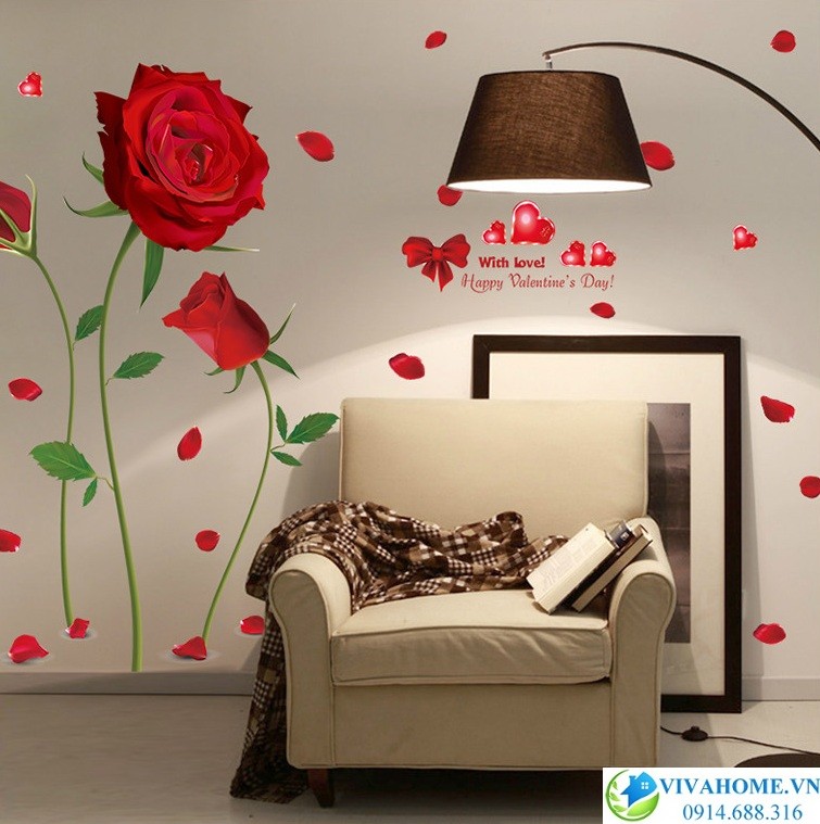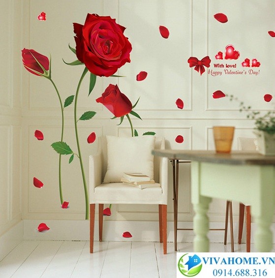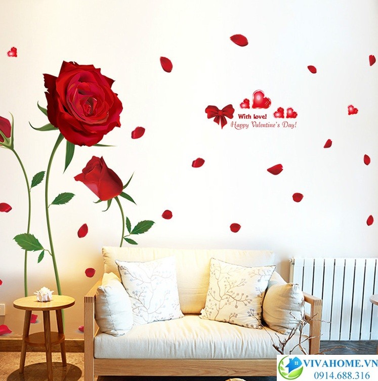 Decal dán tường Hoa hồng đỏ với hình ảnh hoa cỏ thiên nhiên được thiết kế cách điệu mang lại vẻ lãng mạn, khoáng đạt và độc đáo cho căn phòng của bạn.