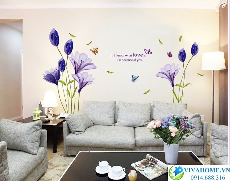 Decal dán tường hoa lan tường tím với màu sắc hoa cỏ nhẹ nhàng, nhã nhặn mang lại vẻ thanh tao nhưng không kém phần sang trọng cho ngôi nhà của bạn. Với một chi phí khá rẻ bạn có được một không gian độc đáo và cá tính riêng cho căn phòng của bạn từ sản phẩm decal dán tường.