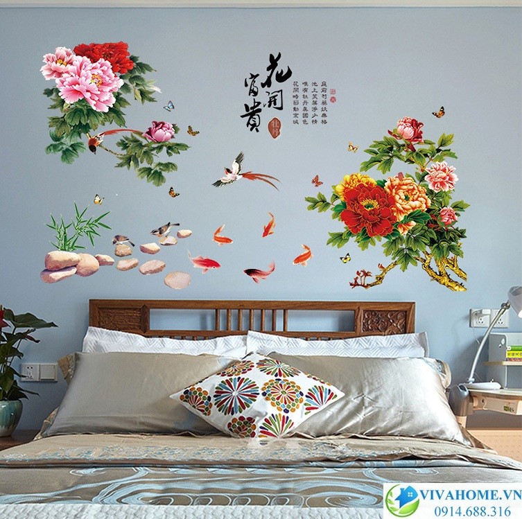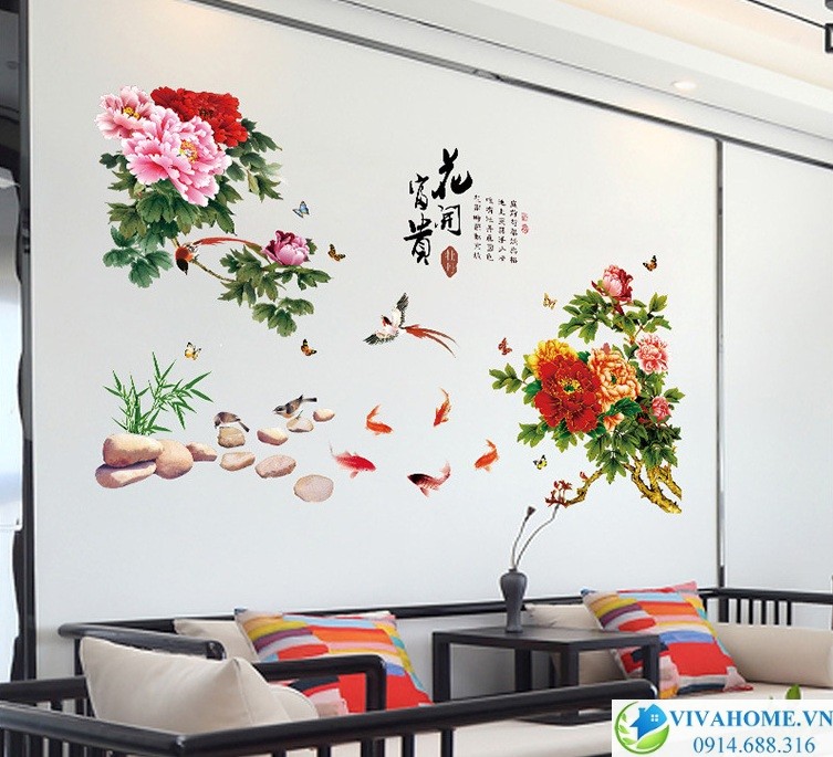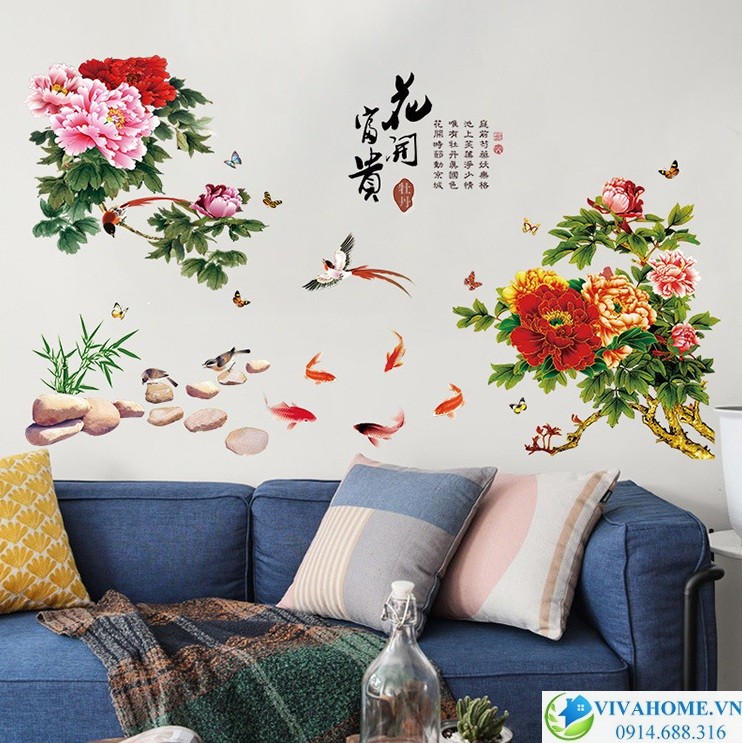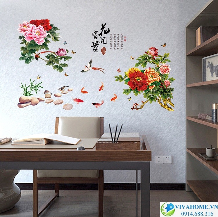 Hoa Mẫu đơn có màu sắc bắt mắt từ lâu đã trở thành một loại hoa tượng trưng cho sự thịnh vượng, phồn vinh, quý phái. Sản phẩm decal dán tường hoa mẫu đơn được thiết kế cách điệu với các họa tiết tinh xảo, màu sắc sắc nét mang lại vẻ độc đáo, cá tính riêng cho căn phòng của bạn.