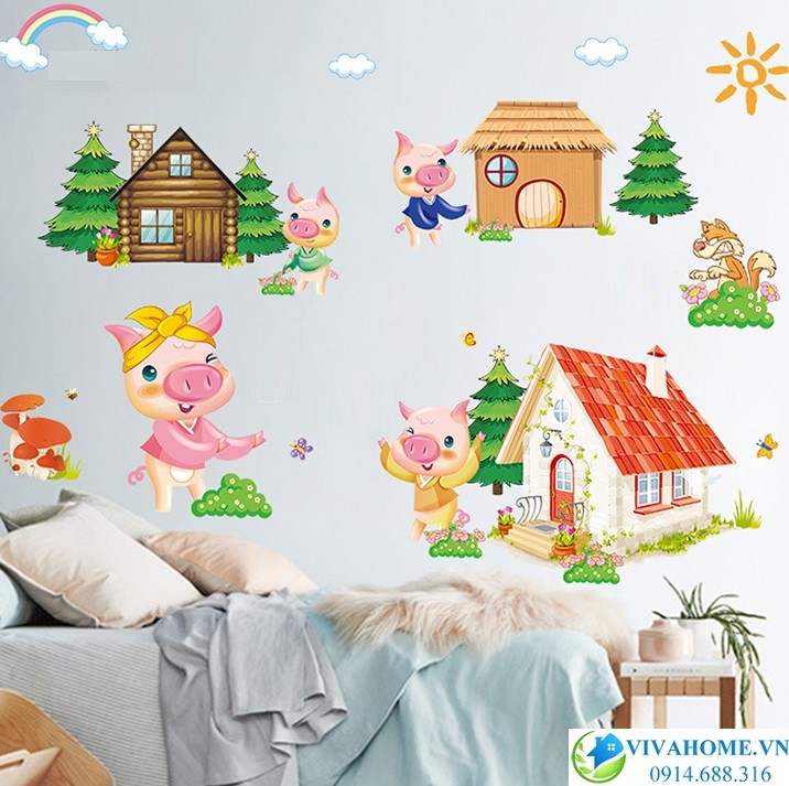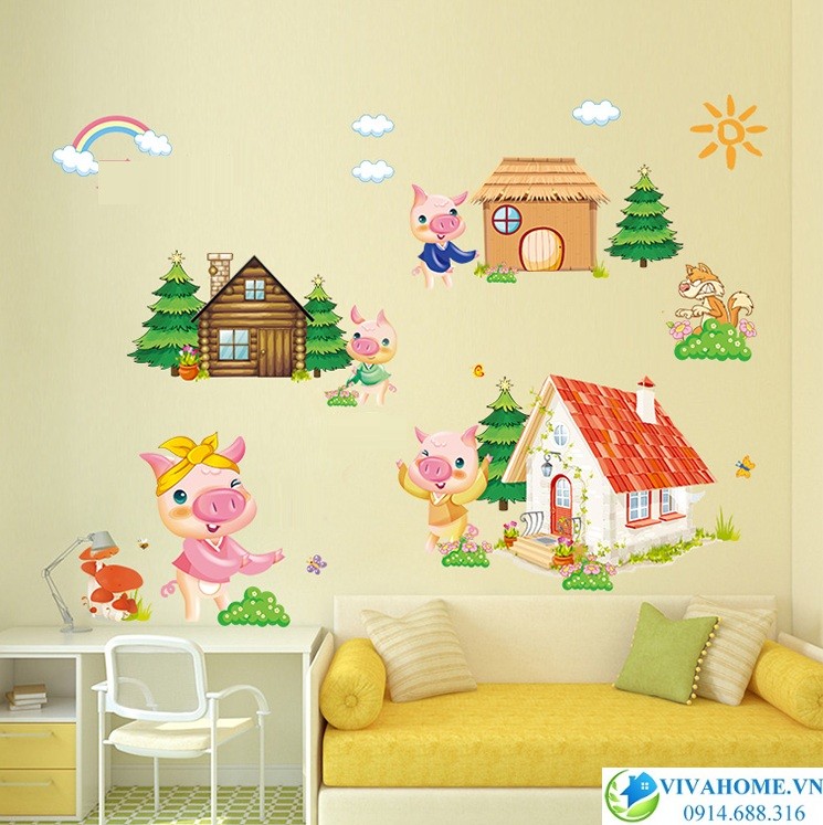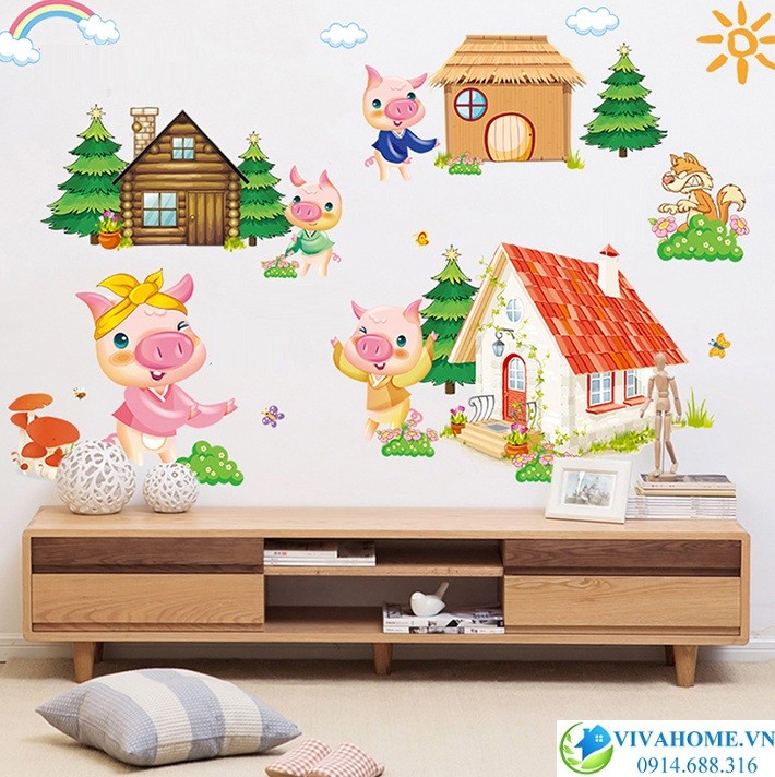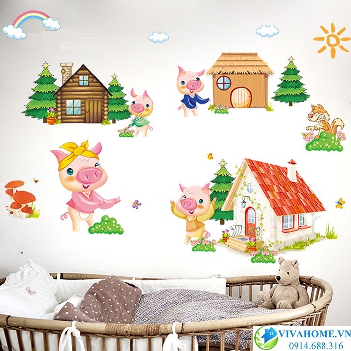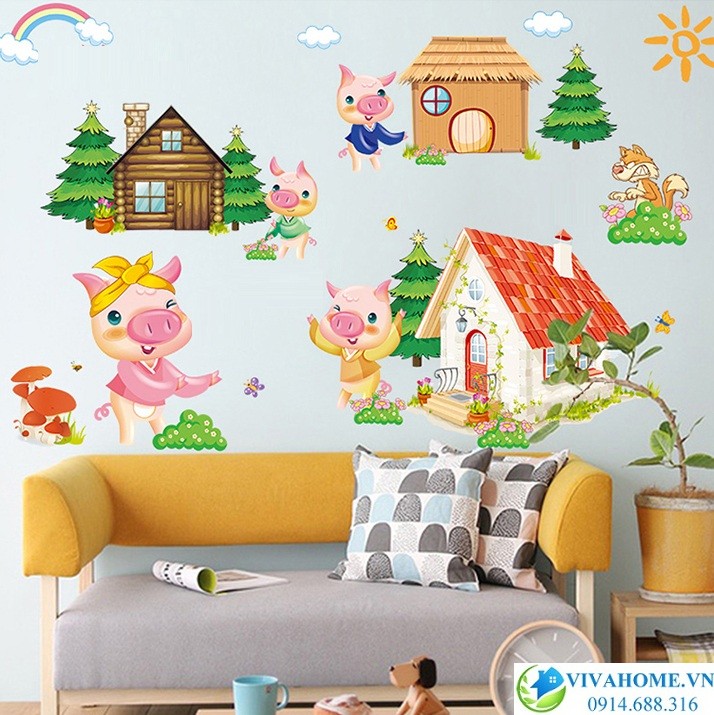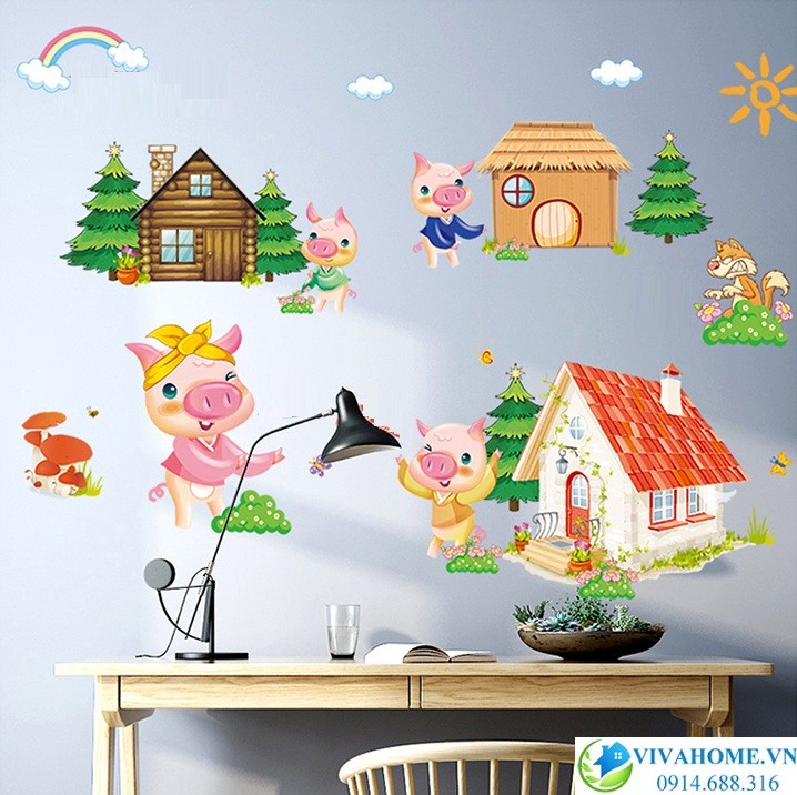 Decal dán tường "Khi mẹ vắng nhà" là một sản phẩm xuất sắc trong chuỗi thiết kế sản phẩm dựa theo những câu chuyện cổ tích ý nghĩa. Câu chuyện khi mẹ vắng nhà kể về những chú heo xinh xắn nghe lời mẹ, không mở cửa cho sói già gian ác vào nhà trong lúc mẹ đi vắng.