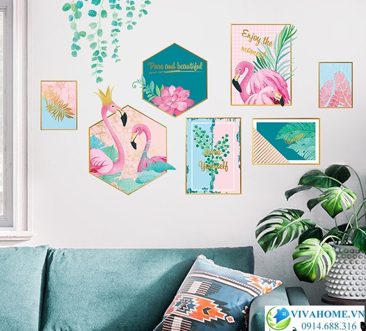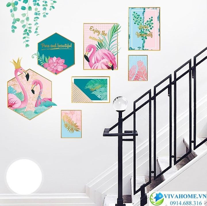 Decal dán tường Khung ảnh chim hạc với màu sắc hài hòa nhẹ nhàng mang lại vẻ lãng mạn nhưng không kém phần thanh tao , sang trọng cho ngôi nhà của bạn.