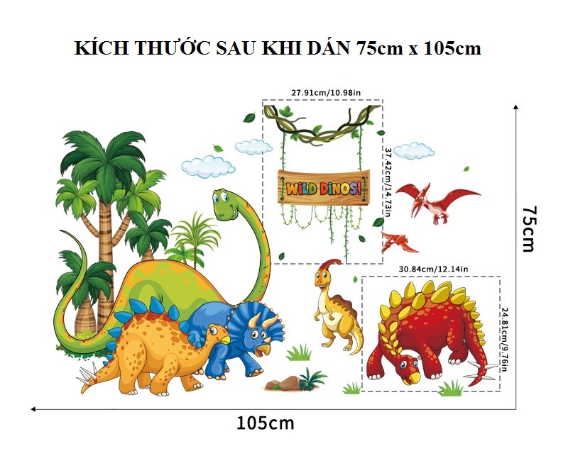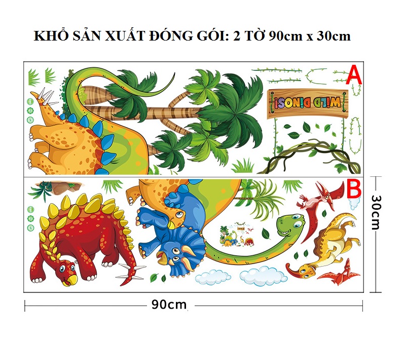 Decal dán tường Khủng long sắc màu với hình các con vật đáng yêu tạo cho căn phòng sẽ bớt khô khan, cứng nhắc, thay vào đó bé sẽ luôn cảm nhận được không gian tươi vui như có những người bạn nhỏ ngay trong phòng vậy.