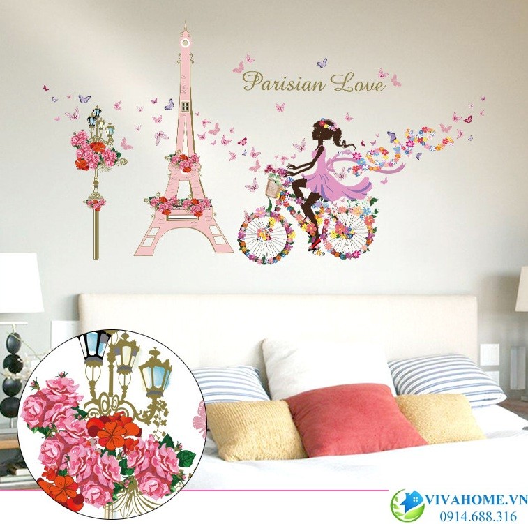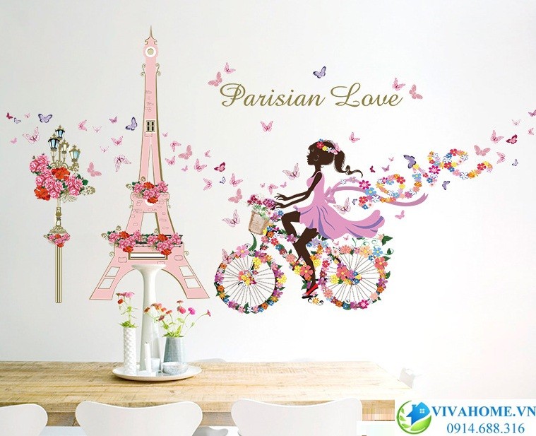Decal dán tường Love paris lấy cảm hứng từ vẻ đẹp thanh lịch của danh lam nổi tiếng thế giới, được thiết kế và sản xuất hết sức công phu, sáng tạo từ đường nét hoa văn tới màu sắc. Căn phòng sẽ trở nên sang trọng và hiện đại hơn bao giờ hết