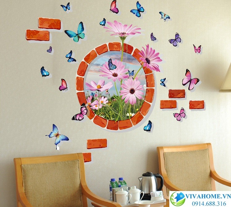 Decal dán tường Ô cửa hoa