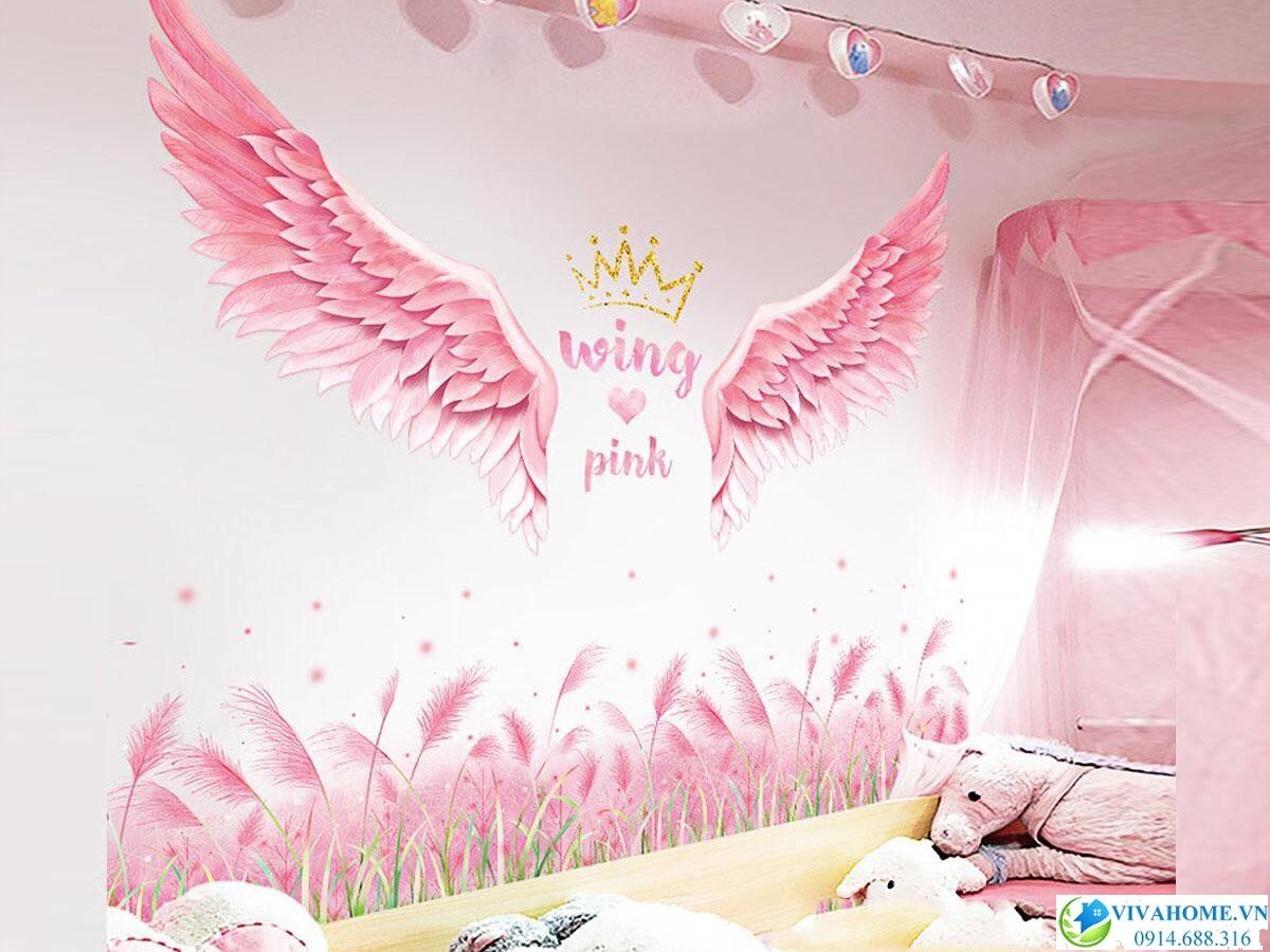 Decal dán tường Đôi cánh thiên thần và cỏ lau hồng với tông hồng nhạt mang lại vẻ đẹp nhẹ nhàng, lãng mạn và không kém phầm thanh tao, sang trọng cho căn phòng của bạn.