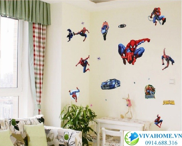 Decal dán tường siêu nhân Spiderman với những nhân vật hoạt hình nổi tiếng, thu hút và bắt mắt giúp không gian phòng ngủ của bé thêm tươi vui như lúc nào cũng có những người bạn bên cạnh.
