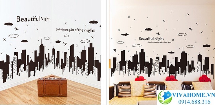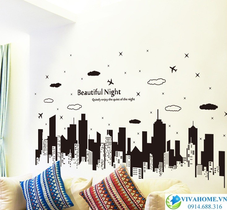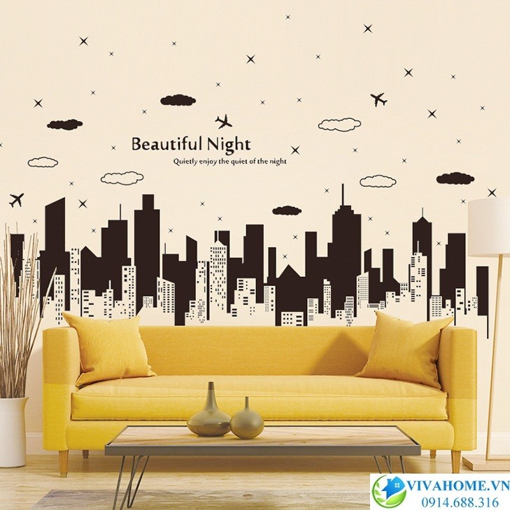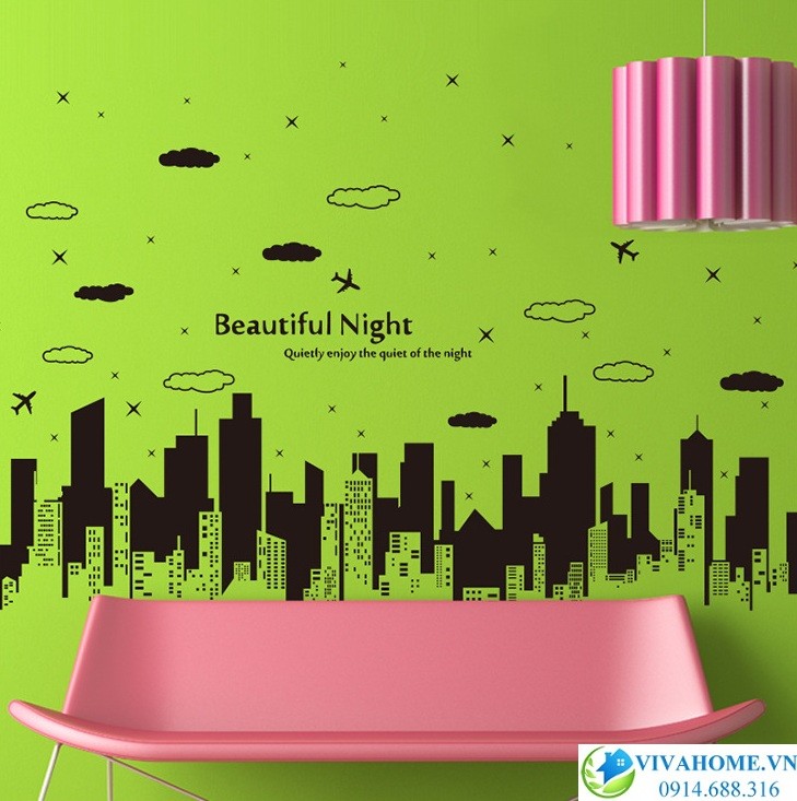 Decal dán tường Thành phố lên đèn lấy cảm hứng từ vẻ đẹp ánh đèn điện lấp lánh của những tòa cao ốc đô thị, tạo cảm giác ấm áp, sum vầy của gia đình sau 1 ngày làm việc vất vả. Sản phẩm được thiết kế và sản xuất hết sức công phu, sáng tạo sẽ giúp căn phòng trở nên sang trọng và hiện đại với màu đen quý phái