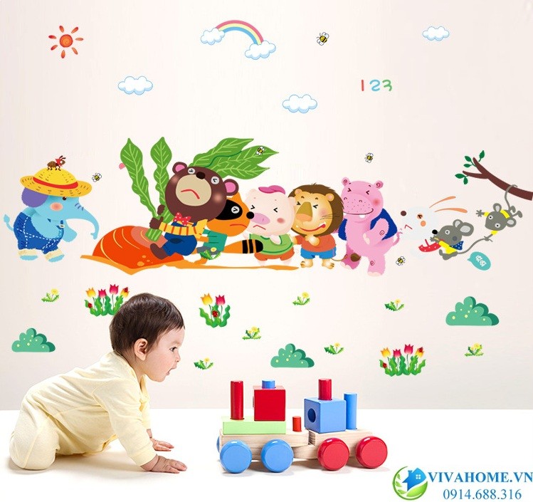 Decal dán tường Thú nhổ củ cà rốt với với hình ảnh ngộ nghĩnh, màu sắc tươi vui vừa trang trí cho căn phòng bớt đơn điệu, vừa giúp bé phát triển các giác quan, nhận biết và khả năng sáng tạo. Chắc chắn bé sẽ rất thích!