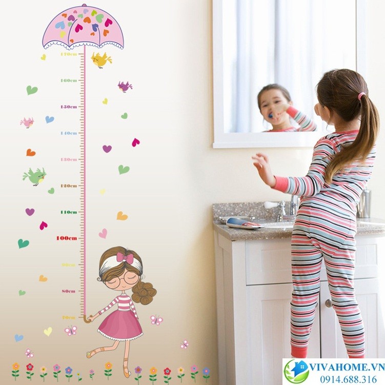 Decal dán tường thước đo chiều cao bé váy hồng chính xác 100% giúp ba mẹ dễ dàng theo dõi sự phát triển chiều cao của bé iu, đồng thời những hình họa ngộ nghĩnh, tươi vui này sẽ giúp căn phòng trở nên siêu đáng yêu hơn bao giờ hết.