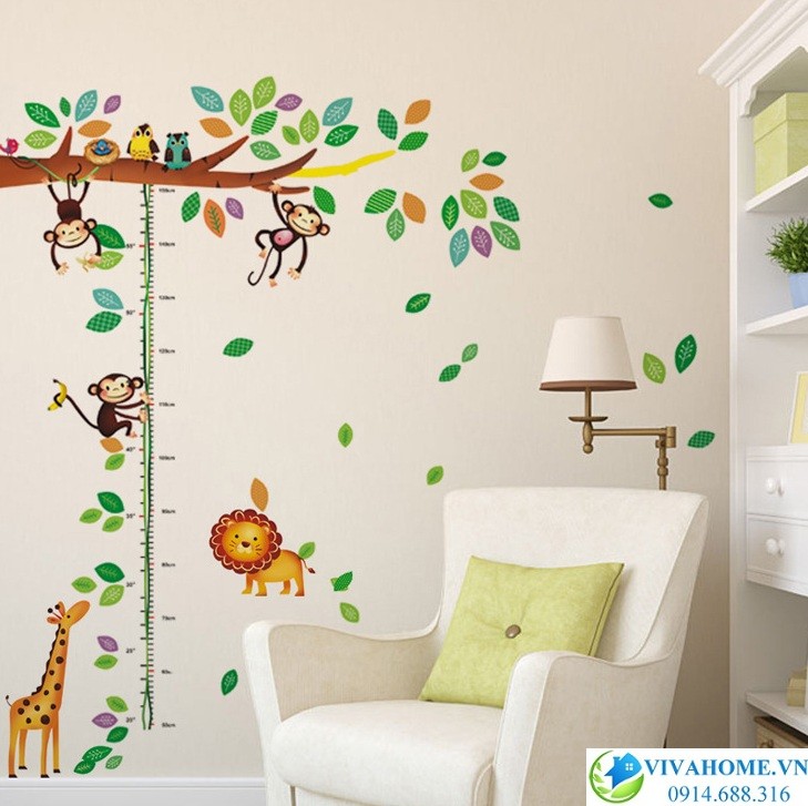 Decal dán tường thước đo chiều cao khỉ và các bạn chính xác 100% giúp ba mẹ dễ dàng theo dõi sự phát triển chiều cao của bé iu, đồng thời những hình họa ngộ nghĩnh, tươi vui này sẽ giúp căn phòng trở nên siêu đáng yêu hơn bao giờ hết